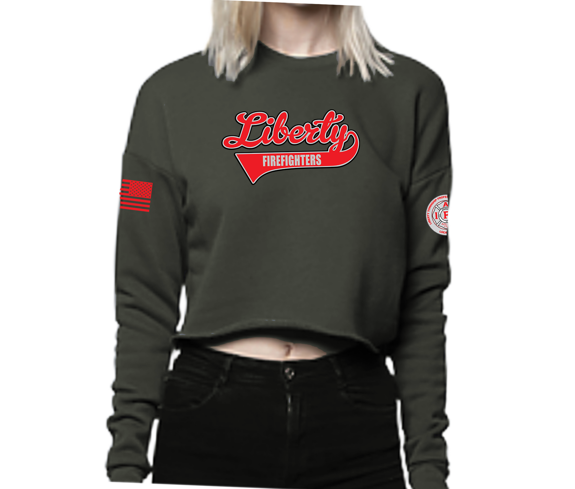 Liberty Softball Script 2025 Women's Crop Crew Sweatshirt